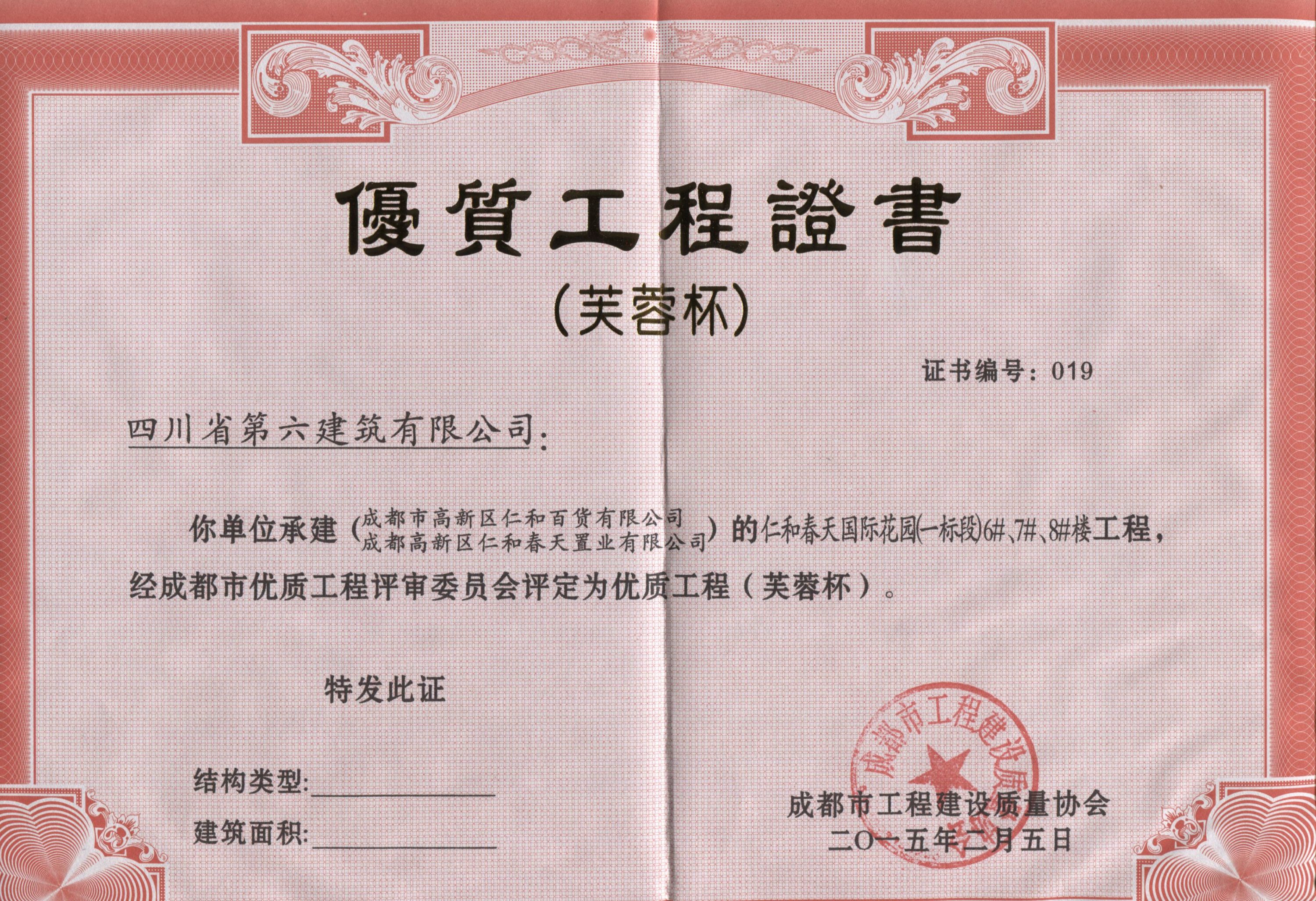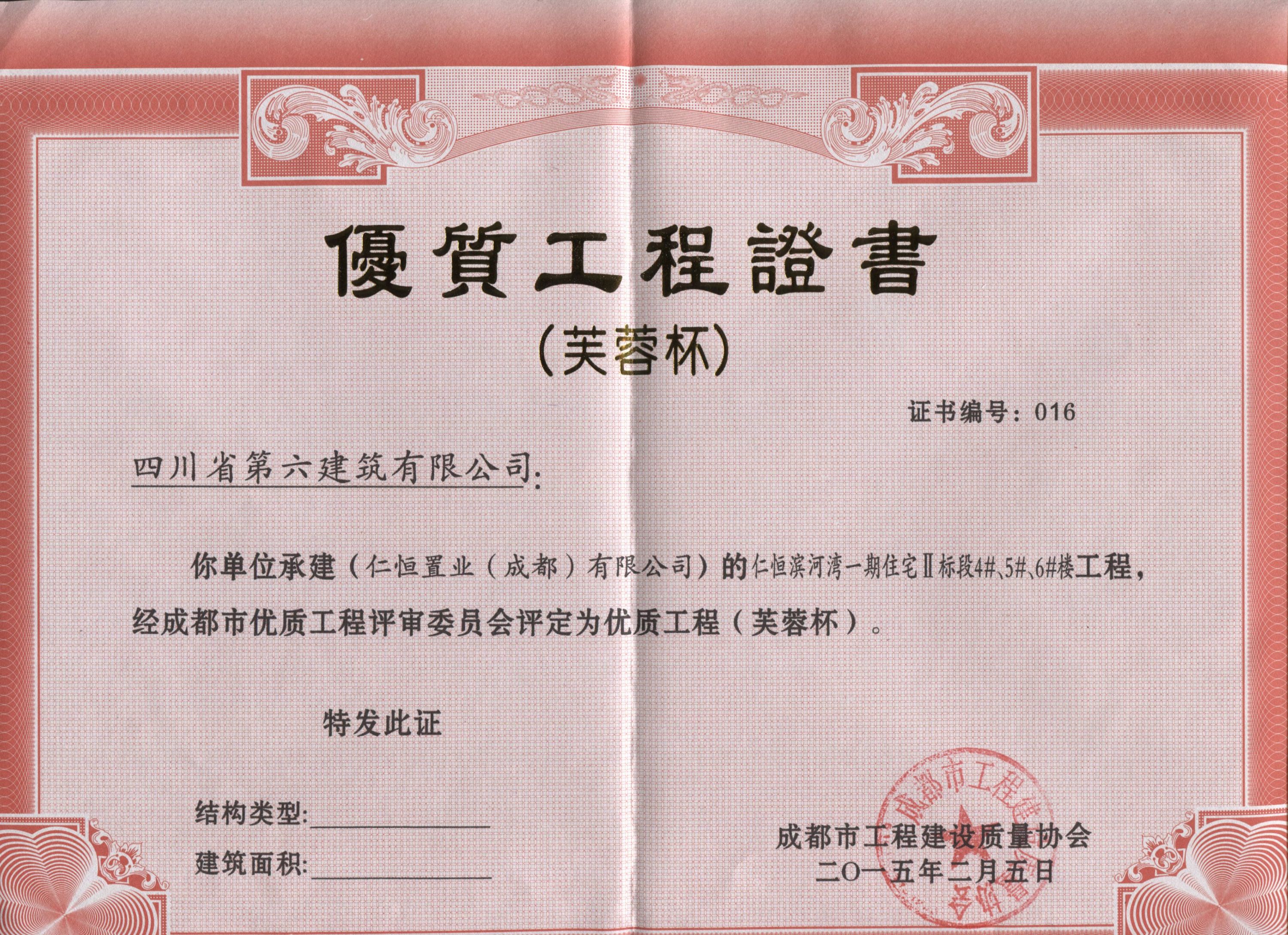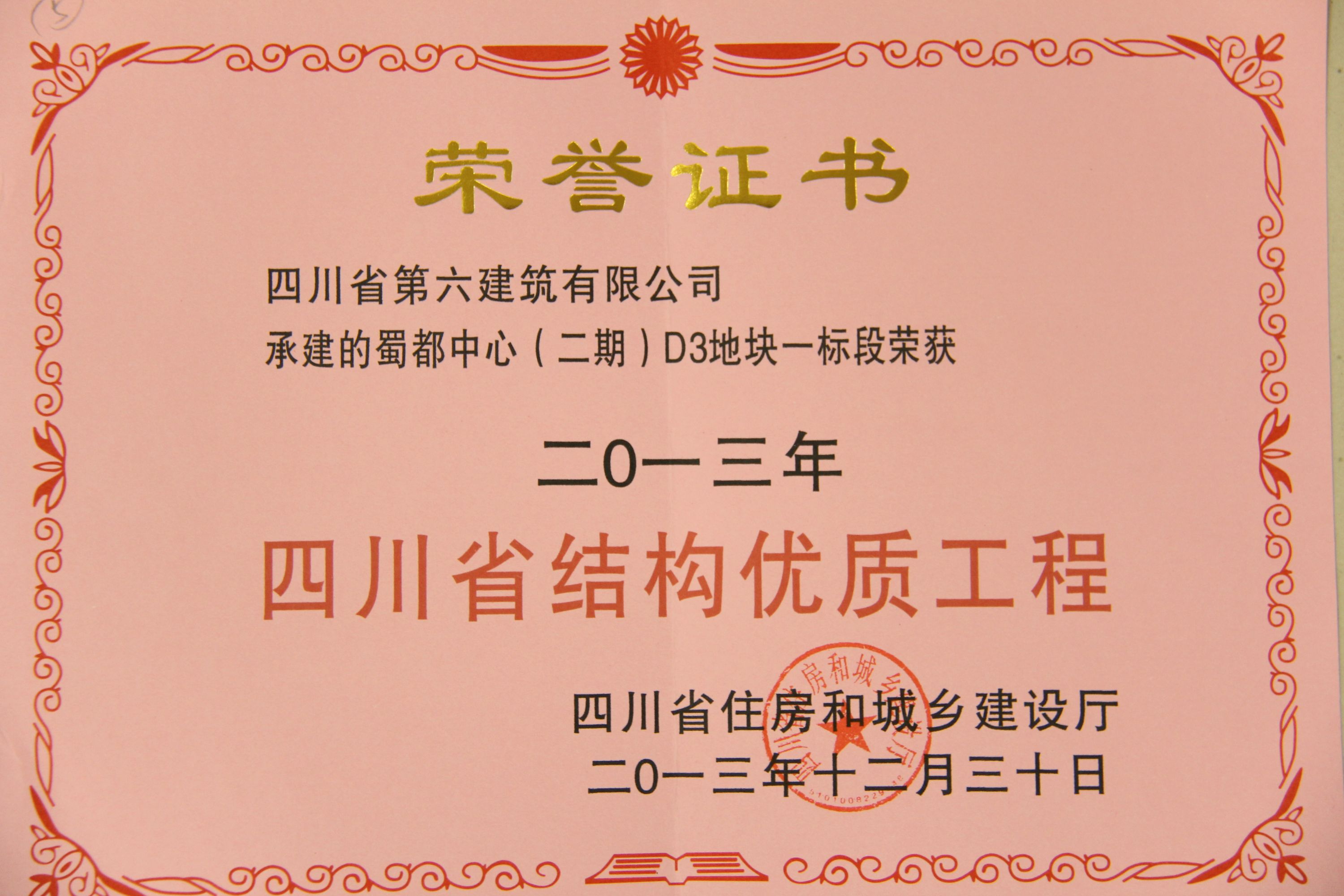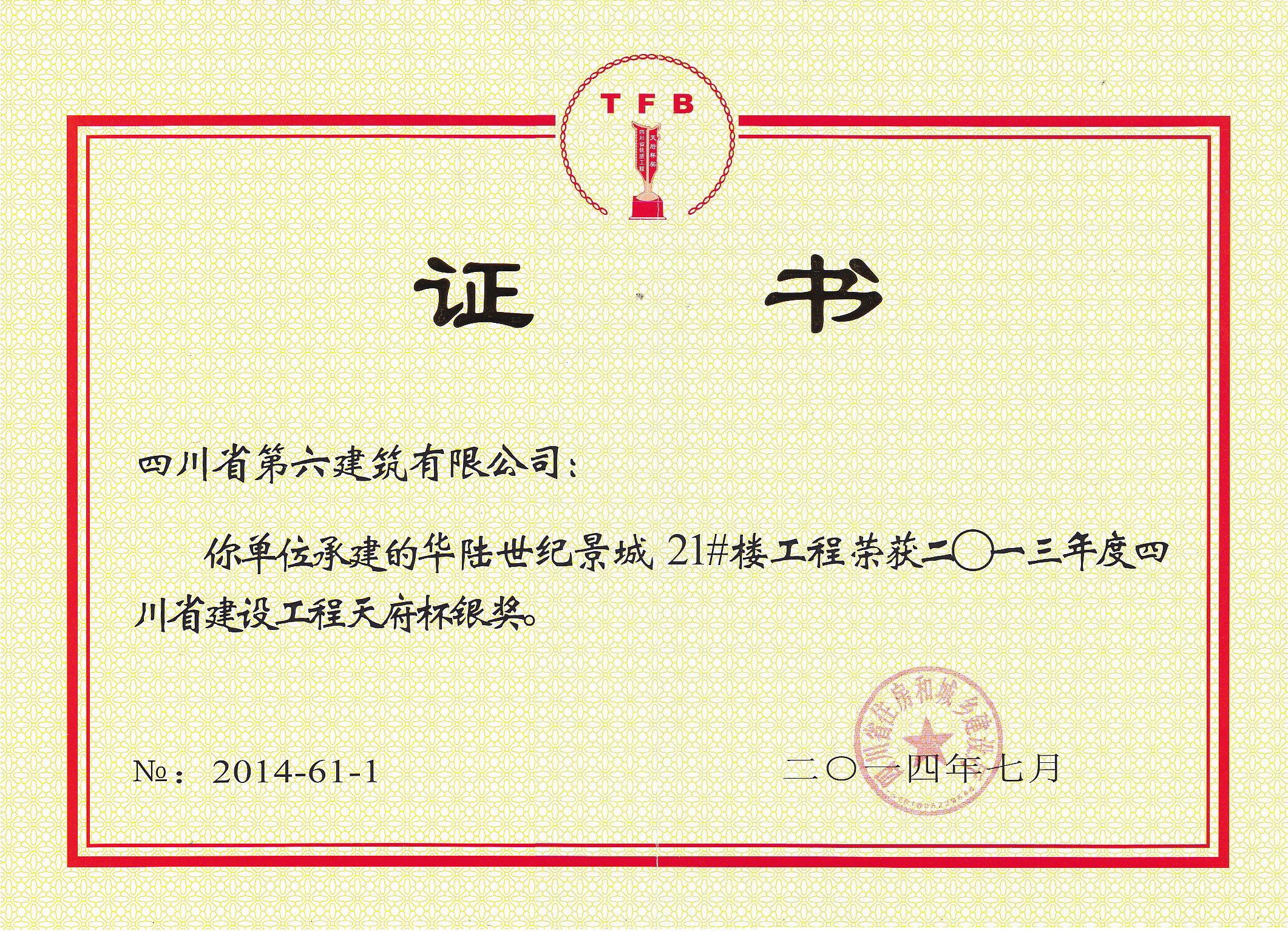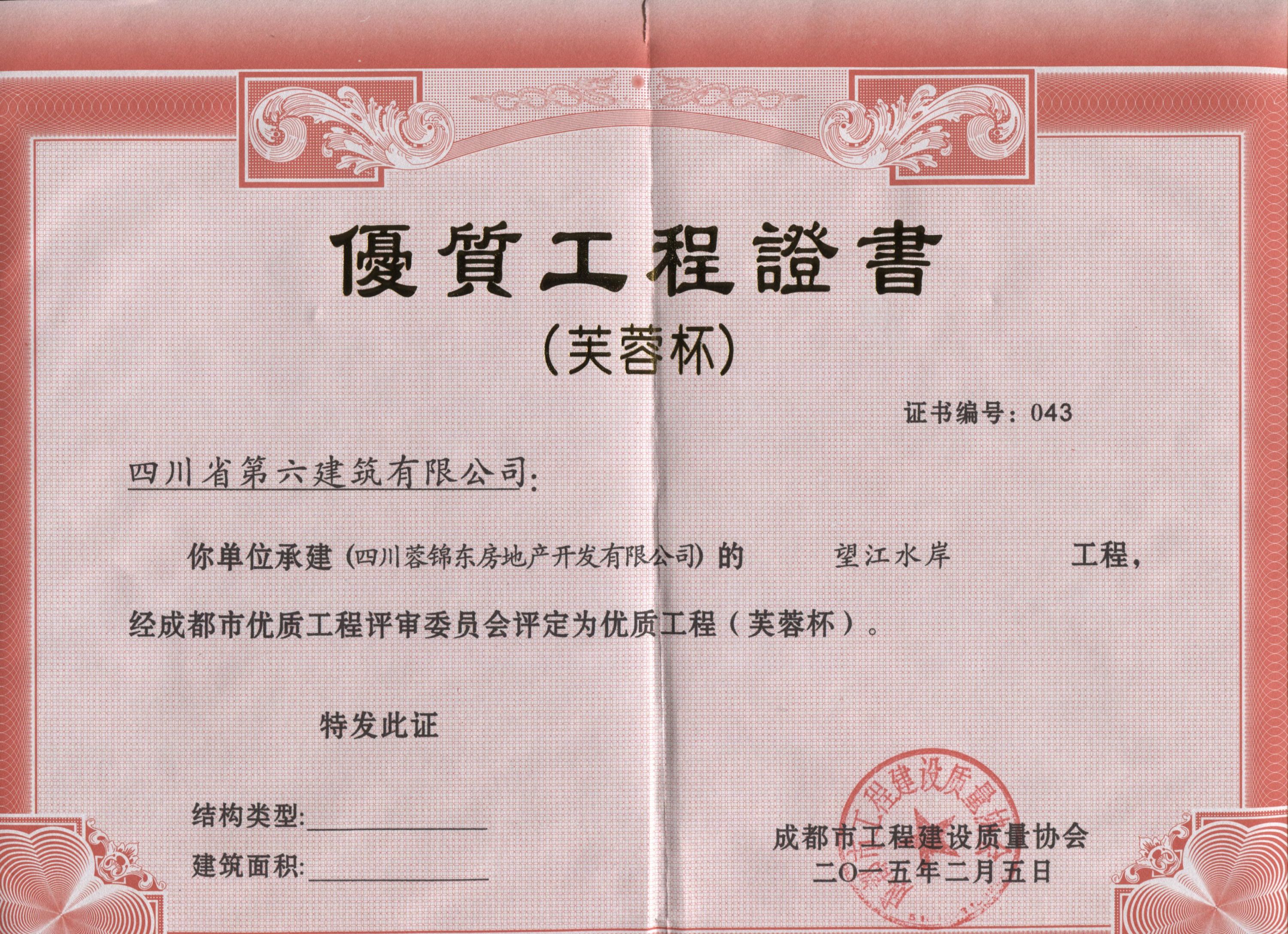 四川省優(yōu)質(zhì)工程“天府杯”金獎(jiǎng)32項(xiàng)、銀獎(jiǎng)16項(xiàng)