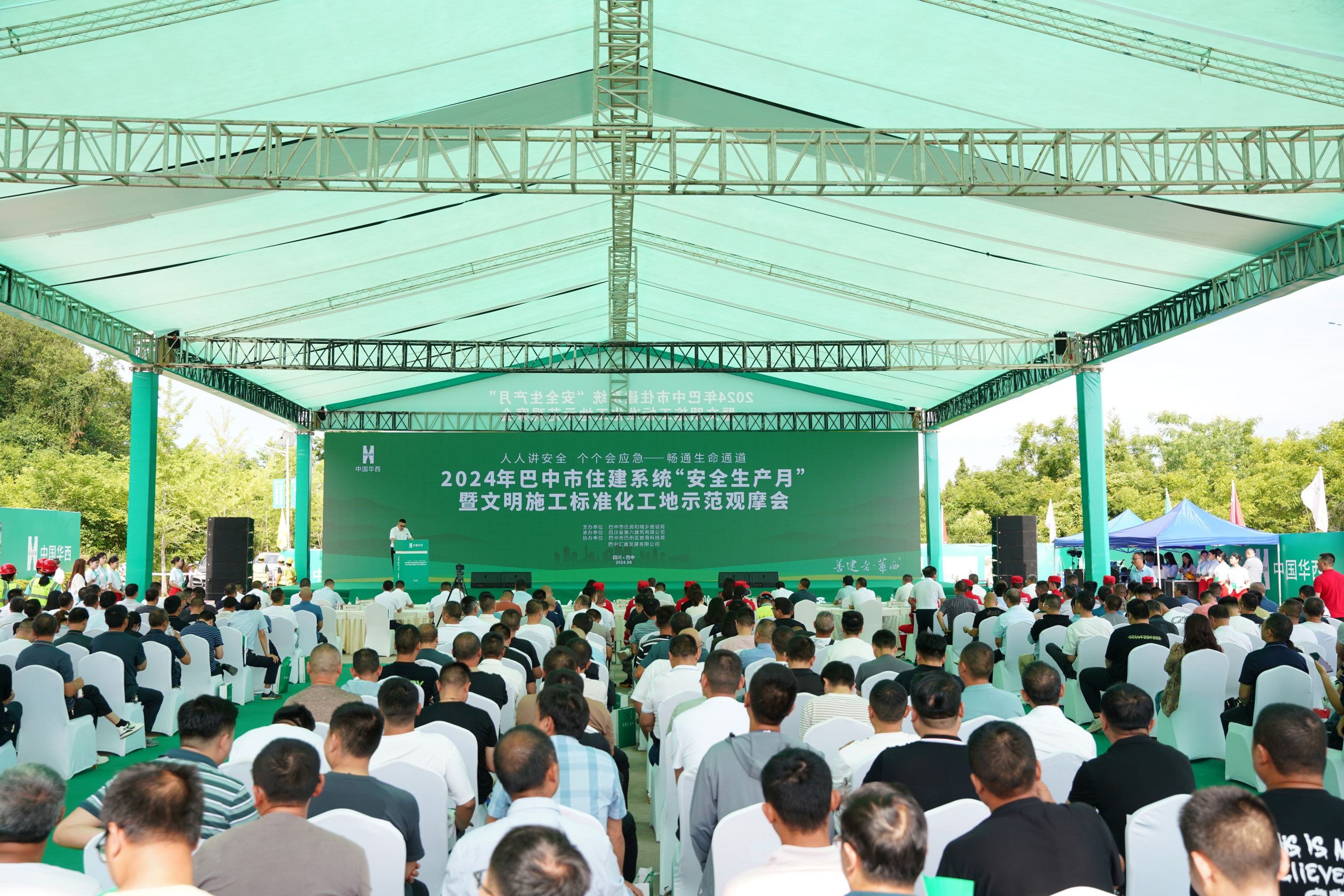 6月17日,2024年巴中市住建系統(tǒng)“安全生產(chǎn)月”暨文明施工標準化工地示范觀摩會在四川六建巴中教育園區(qū)項目順利舉行。巴中市住建局副局長張嵐、中國華西企業(yè)股份有限公司工程管理中心副總監(jiān)趙兵、四川六建副總經(jīng)理梅放、巴中市巴州區(qū)教育科技局局長劉祥君、巴州區(qū)住建局總工程師楊秀明、巴中匯鑫發(fā)展有限公司董事長李苑華出席活動,會議由巴中市安監(jiān)站站長劉武主持。此次觀摩會以“人人講安全,個個會應(yīng)急—暢通生命通道”為主題,現(xiàn)場觀摩人數(shù)約350人。