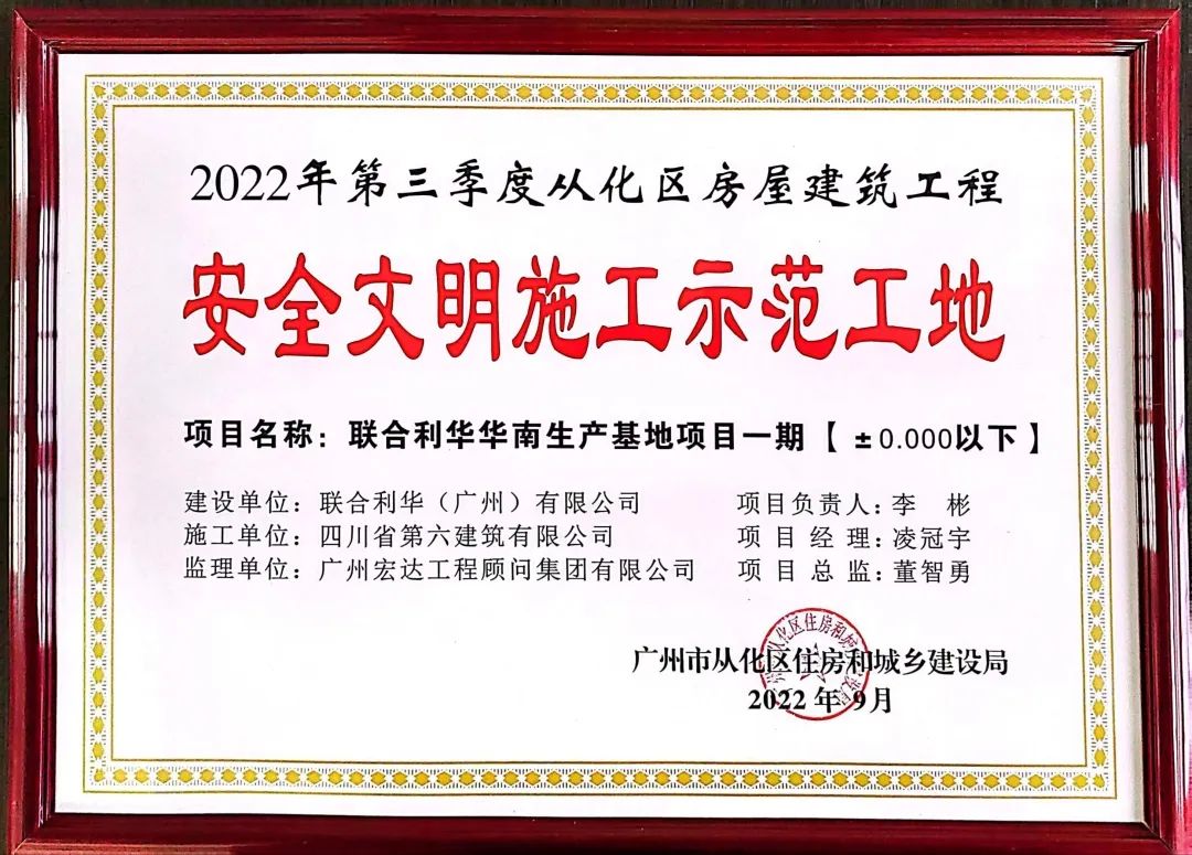 正所謂雙喜臨門(mén)。9月28日,在2022年廣州市從化區(qū)住房與城鄉(xiāng)建設(shè)系統(tǒng)“質(zhì)量月”現(xiàn)場(chǎng)觀摩暨安全生產(chǎn)現(xiàn)場(chǎng)會(huì)上,廣東省2022年重點(diǎn)建設(shè)項(xiàng)目之一、世界500強(qiáng)企業(yè)聯(lián)合利華集團(tuán)近年來(lái)在中國(guó)最大的投資項(xiàng)目——聯(lián)合利華華南生產(chǎn)基地項(xiàng)目還榮獲“2022年第三季從化區(qū)房屋建筑工程安全文明施工示范工地”稱號(hào)。