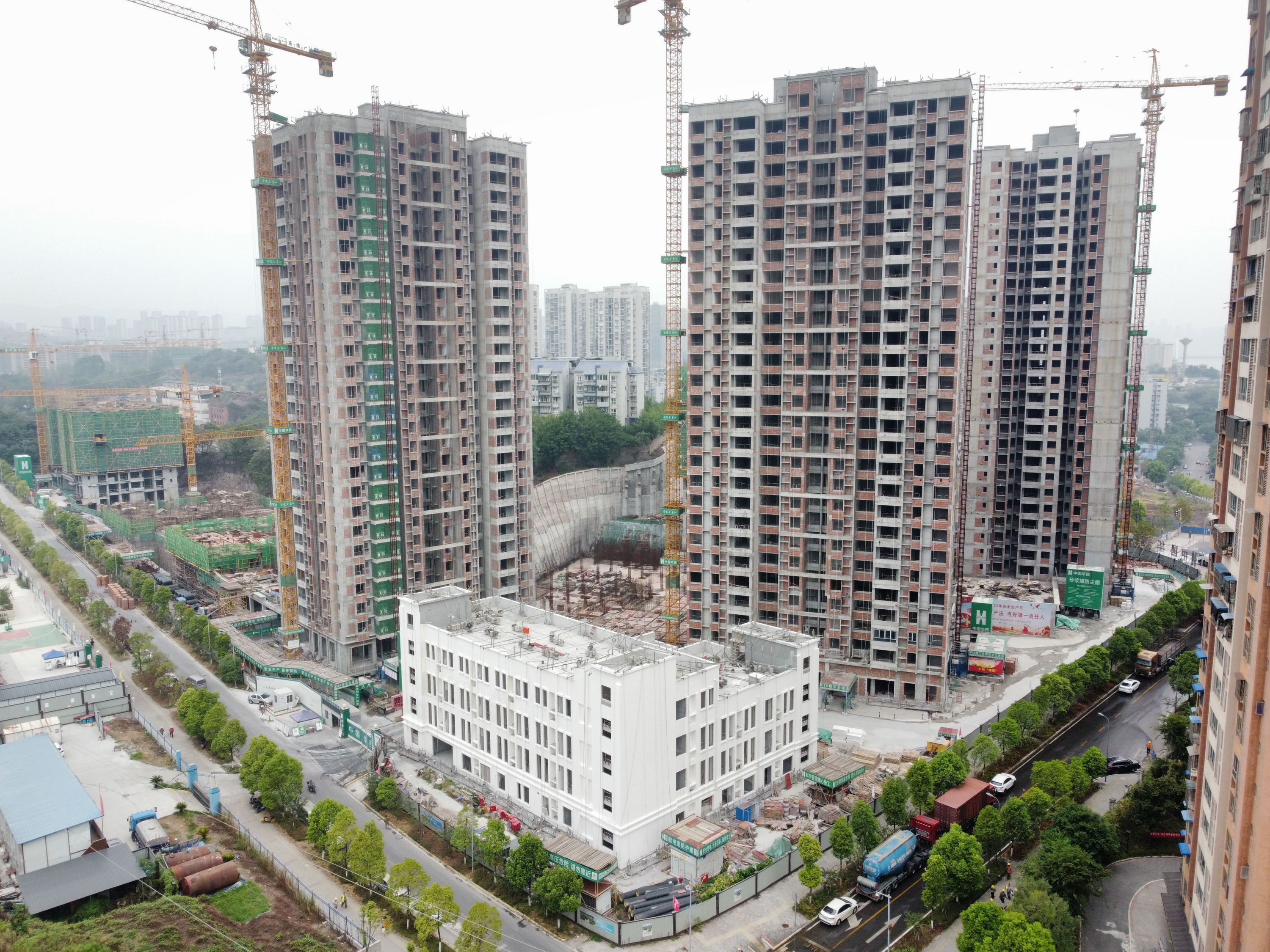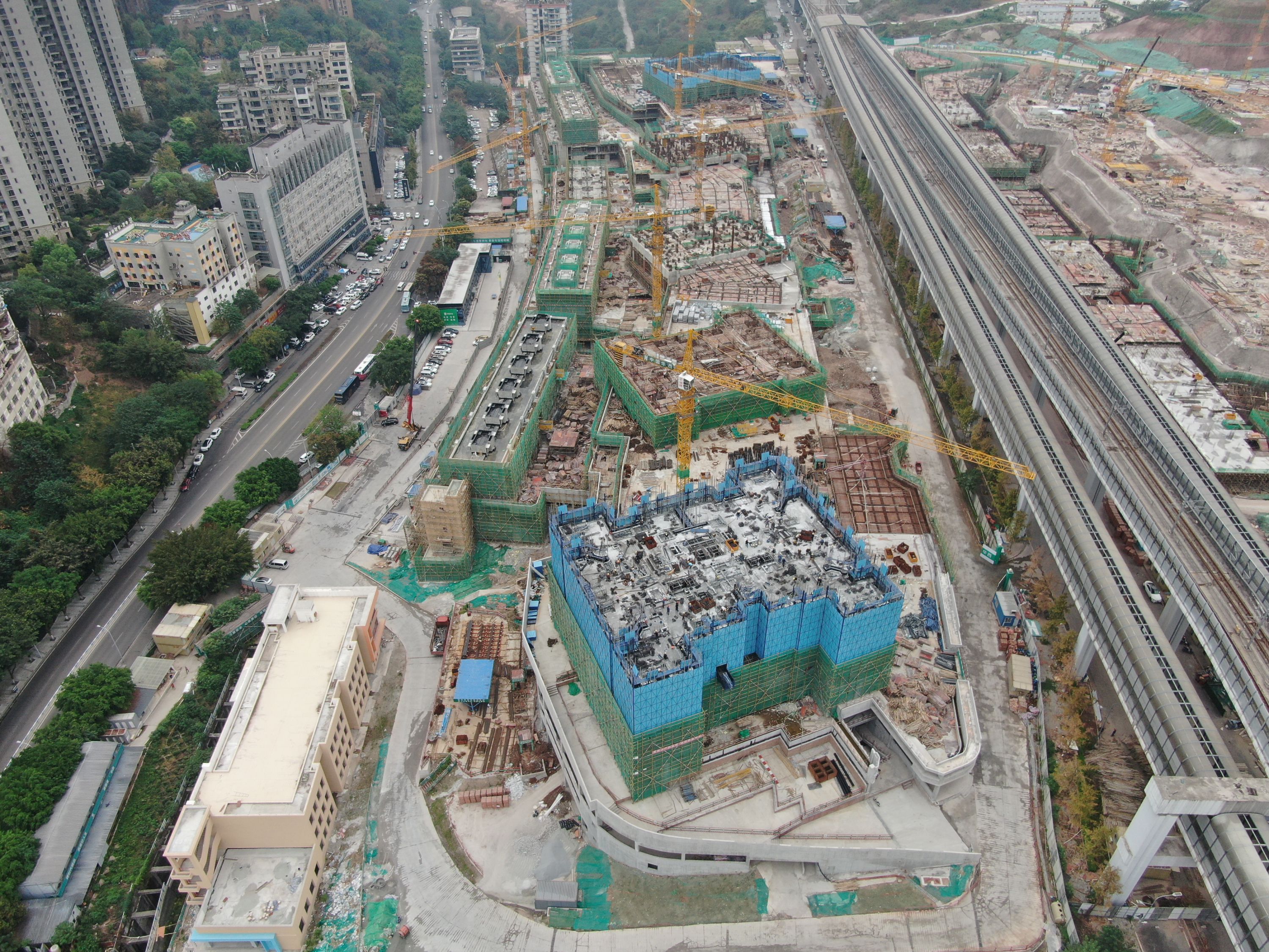 楊家山片區(qū)商住項目4#、5#地塊總承包工程合同金額近26億元,建筑面積83.4萬㎡,使用鋁模約230萬㎡,最高建筑達155.4米,是集團在渝市場在建項目中合同額最高、體量最大、鋁膜使用最多、建筑高度最高的超高層建筑群項目。