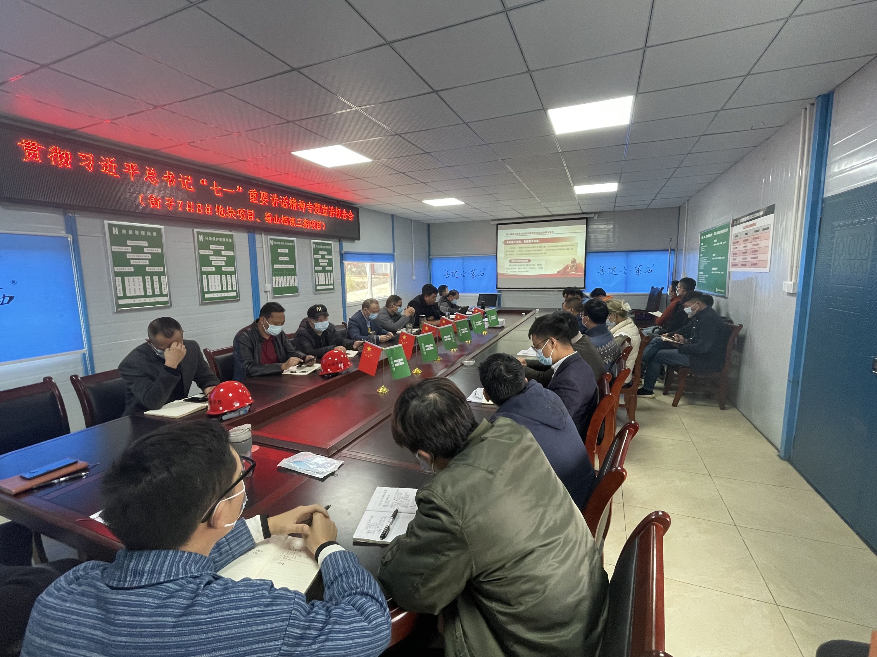 會上,深入學(xué)習(xí)了習(xí)近平總書記在慶祝中國共產(chǎn)黨成立100周年大會上的重要講話精神。伍建華強調(diào),項目部要深刻領(lǐng)會習(xí)近平總書記“七一”重要講話精神的深刻內(nèi)涵、重大意義和時代價值。并結(jié)合集團十四五規(guī)劃、第三次黨代會精神、“8795”工作部署,推動學(xué)習(xí)貫徹不斷走深走實,全體管理人員要強化使命擔(dān)當(dāng),奮勇拼搏、真抓實干,不斷提升建設(shè)效率,爭創(chuàng)精品工程。同時要守規(guī)守紀、嚴于律己,營造風(fēng)清氣正的工作環(huán)境。