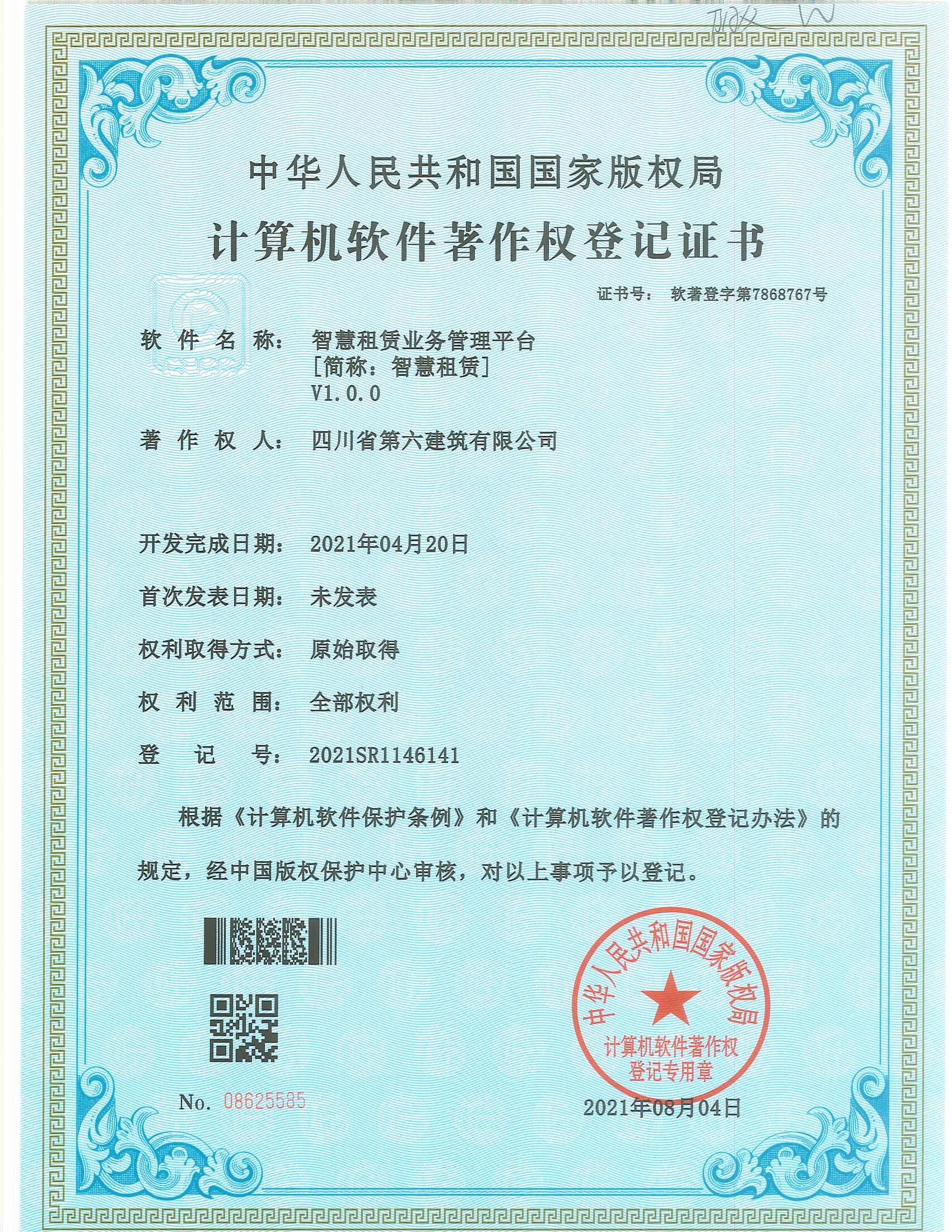 為提高管理效率,向數(shù)字化管理轉(zhuǎn)型,結(jié)合生產(chǎn)管理需要,租賃分公司歷經(jīng)15個月完成了智慧租賃業(yè)務(wù)管理平臺(1.0版)的研發(fā),并于2021年5月通過公司專家組的驗(yàn)收。同年4月開始向國家版權(quán)局申報(bào)軟件著作權(quán),于8月4日獲得了國家版權(quán)局頒發(fā)的計(jì)算機(jī)軟件著作權(quán)登記證書。