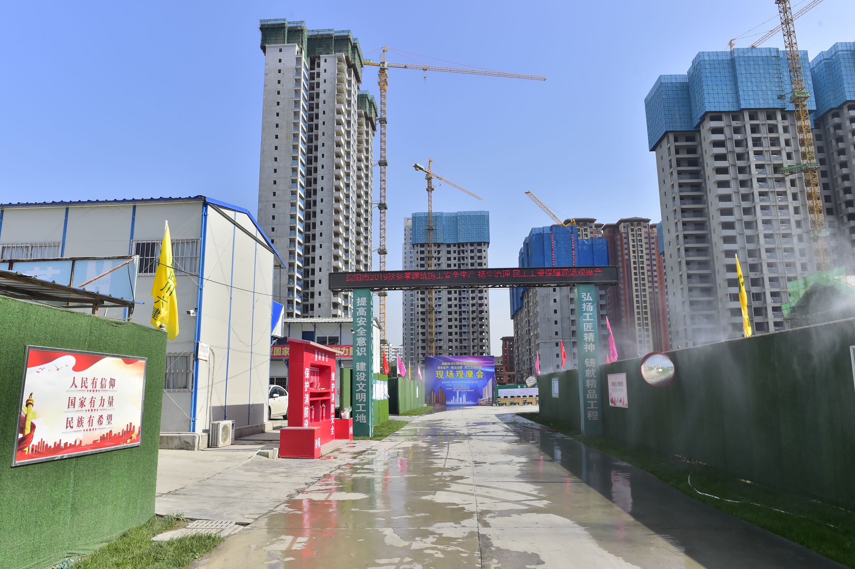 近日,由綿陽市住建委、綿陽市城建監(jiān)察支隊(duì)及公司共同舉辦的綿陽市2019秋冬季建筑施工安全生產(chǎn)揚(yáng)塵治理和民工工資保障現(xiàn)場觀摩會(huì)在由一分公司承建的綿陽九洲? 躍進(jìn)路16號項(xiàng)目舉行。綿陽市城區(qū)在建工地項(xiàng)目代表、市區(qū)行政主管部門負(fù)責(zé)人等共計(jì)600余人參加此次現(xiàn)場觀摩會(huì)。