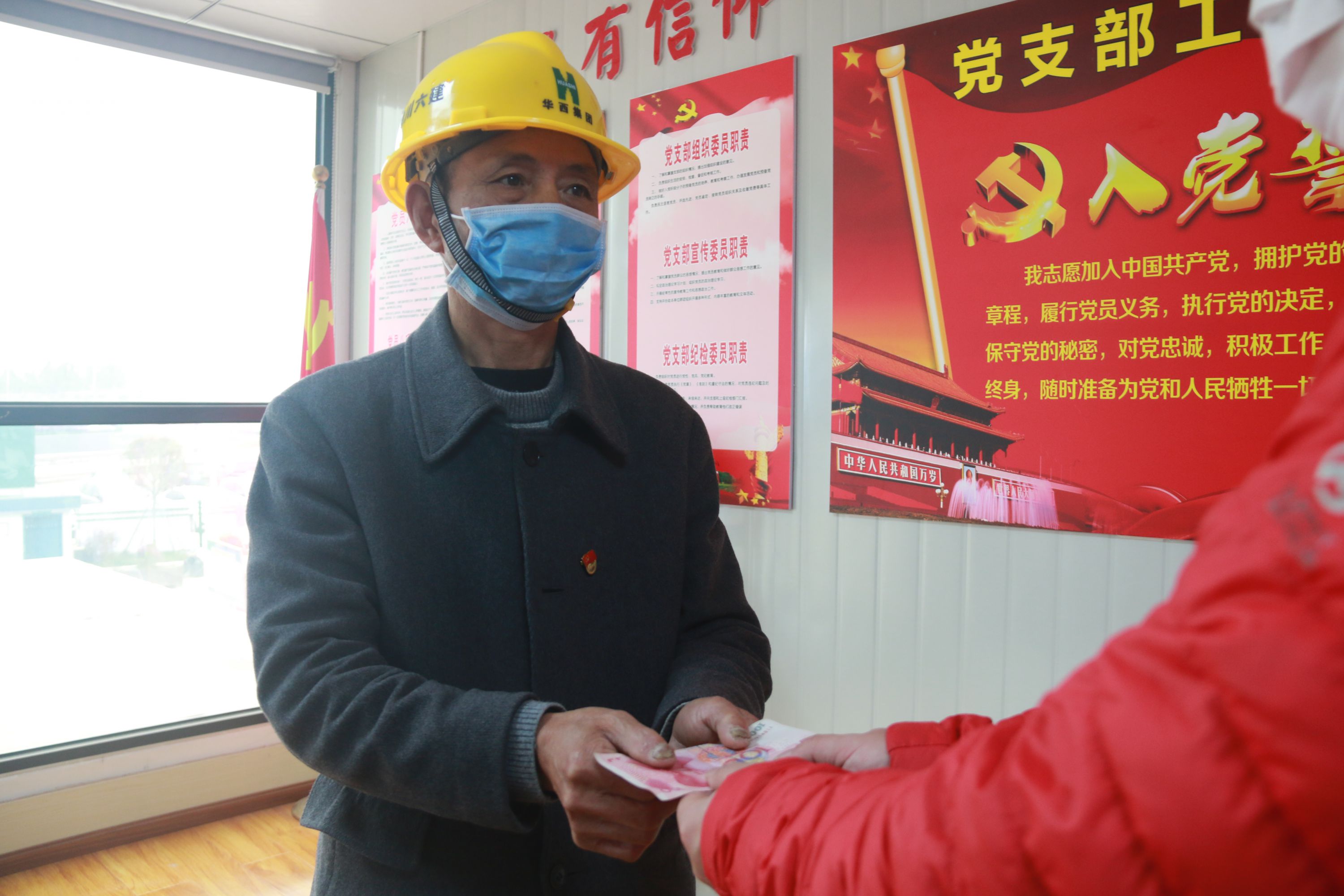 同樣,在公司新尚創(chuàng)智工程項目部,三名來自綿陽市安州區(qū)沸水鎮(zhèn)的流動黨員鄧香春、杜子軍、肖桂林向組織鄭重的遞上了一份自己心意,希望組織能代他們轉(zhuǎn)達。“5.12的時候,我們忘不了全國人民對我們的援助,忘不了大家對我們的恩情。作為一名黨員,貢獻一點自己的力量,希望疫情早點過去,武漢加油!”支部委員杜子軍如是說道。