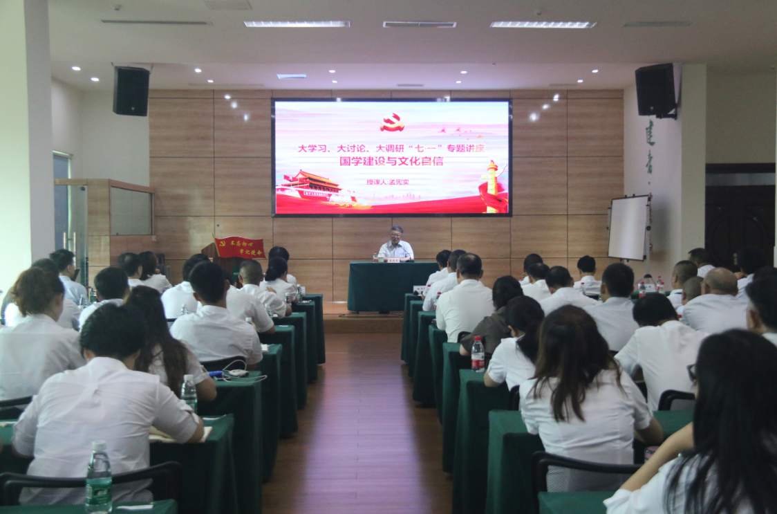 這位特別牛的孟先生應(yīng)公司黨委的要求,在7月4日下午來到公司14樓活動室,以“國學(xué)建設(shè)與文化自信---家風(fēng)傳承的力量”為題,做了一堂“大學(xué)習(xí)、大討論、大調(diào)研”七一專題講座。在場的120名黨員代表及四個分會場的近百名黨員聽得如癡如醉,可謂是現(xiàn)場版的六建“百家講壇”。
