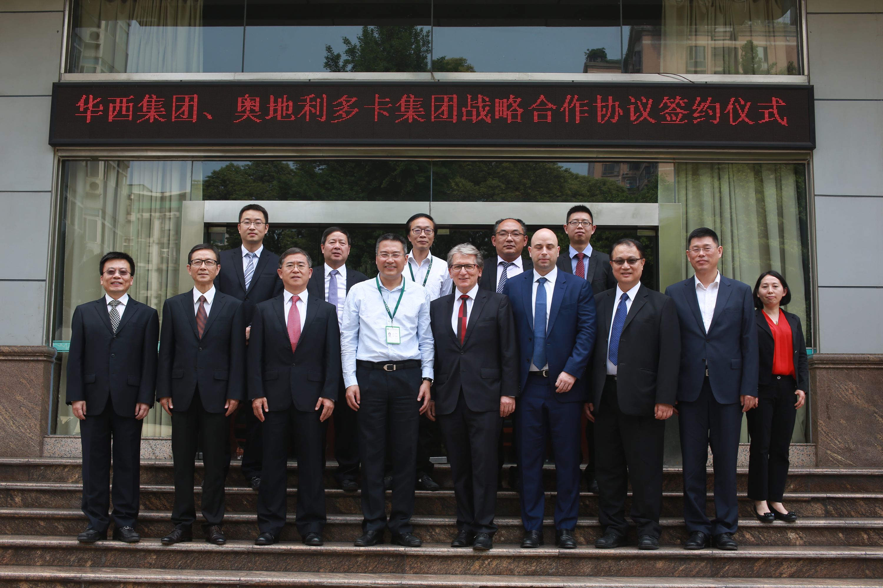 2018年4月19日,華西集團(tuán)與奧地利多卡集團(tuán)公司戰(zhàn)略合作協(xié)議簽約儀式在集團(tuán)公司二樓會議室成功召開。奧地利多卡集團(tuán)母公司副董事長Reicher Werner、多卡集團(tuán)亞太區(qū)執(zhí)行總裁Stefan Schedel、多卡中國執(zhí)行總裁朱志培等人一行以及集團(tuán)公司黨委書記董事長陳貴林、集團(tuán)公司總經(jīng)理?xiàng)畋蟆⒓瘓F(tuán)副總經(jīng)理孫前元、集團(tuán)公司總工程師陳躍熙、六公司董事長任予鋒、六公司總工程司薛慶、六公司模架事業(yè)部總經(jīng)理劉東及相關(guān)部門負(fù)責(zé)人出席此次簽約儀式。