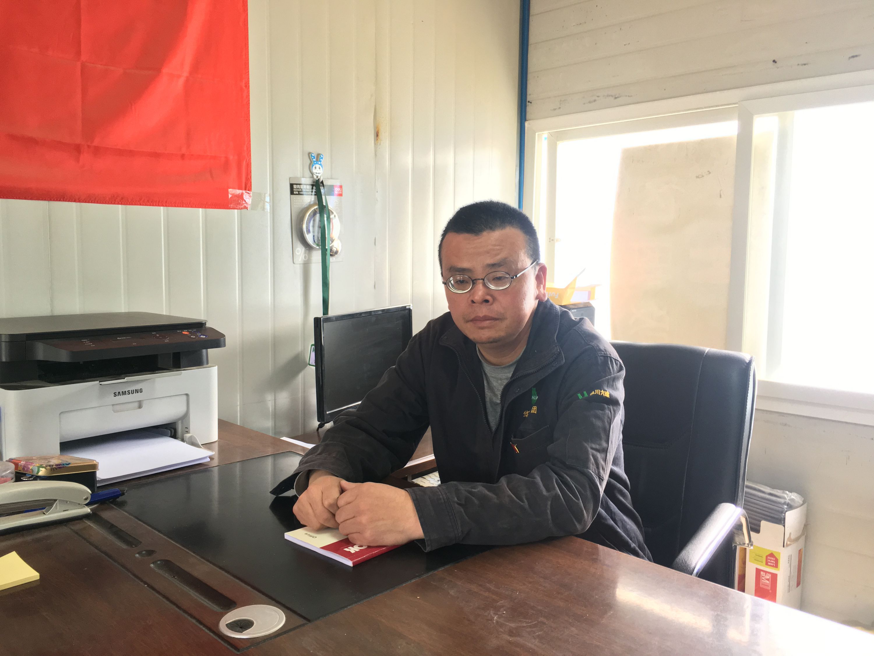 唐慶,公司色達(dá)洛若撤鄉(xiāng)建鎮(zhèn)工程項(xiàng)目黨支部書記,在向項(xiàng)目部的同事們通知完了“停電”的消息后,他并沒(méi)有松氣,反而變得嚴(yán)肅了起來(lái)。按照項(xiàng)目部停電應(yīng)急方案,項(xiàng)目部自備的大功率柴油發(fā)電機(jī)即將啟動(dòng)。但偏偏就在一天前,整個(gè)項(xiàng)目部油料儲(chǔ)備已經(jīng)見(jiàn)底,新購(gòu)的柴油一時(shí)還不能送到項(xiàng)目部,怎么辦?這成了擺在這位老黨員面前的一道大難題。他拿起手機(jī)看了看時(shí)間,此時(shí)已經(jīng)是19:35。他沒(méi)有猶豫,用手機(jī)迅速的撥出了一串號(hào)碼,“小余,你過(guò)來(lái),項(xiàng)目上柴油不夠了,一會(huì)兒發(fā)電不夠用,我們馬上到色達(dá)去買油!”說(shuō)完,他掛掉電話,順手拿起搭在椅子上的軍大衣和電筒往辦公室外走。