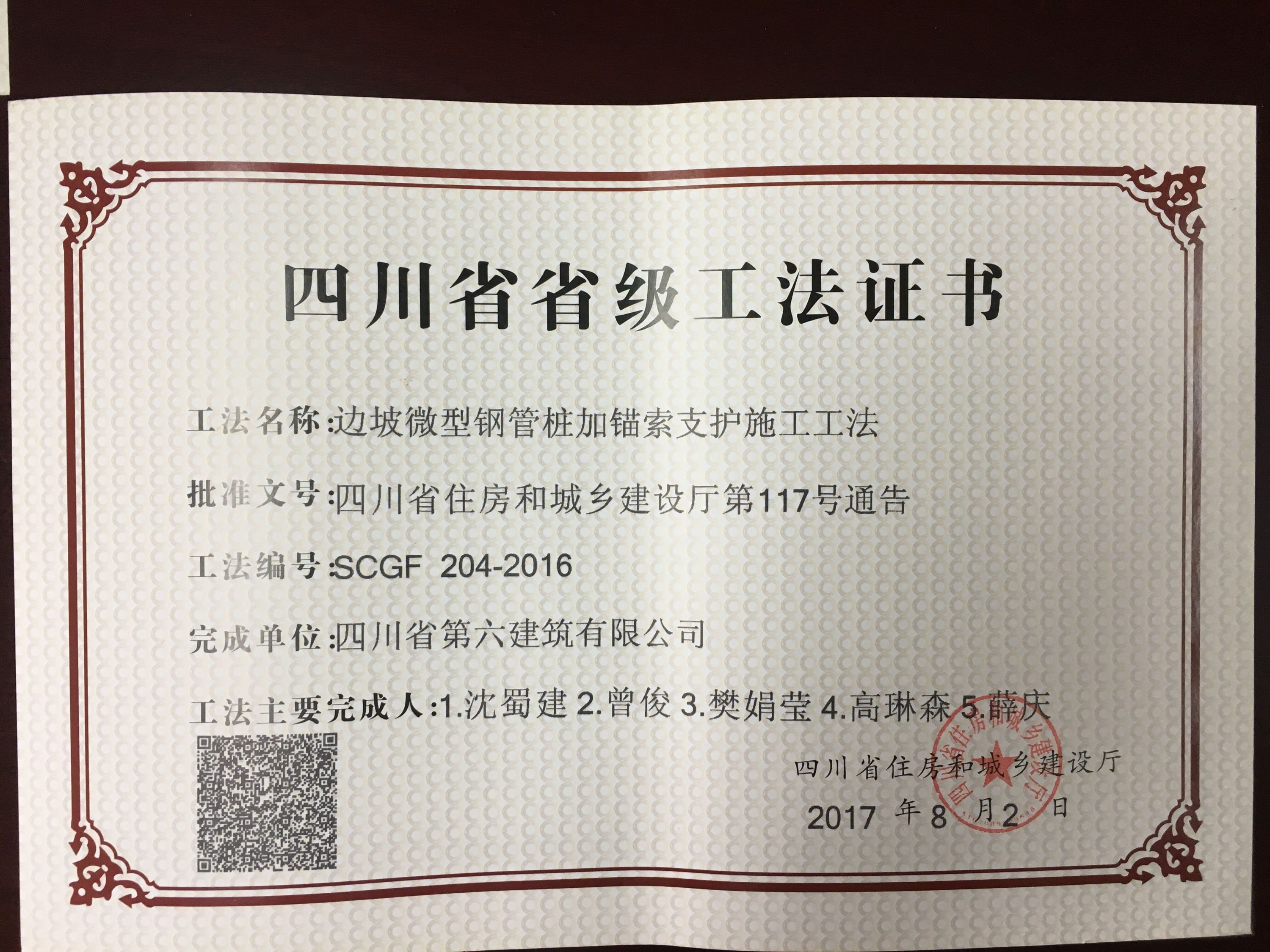 近日,四川省住房和城鄉(xiāng)建設(shè)廳公布2016年度四川省工程建設(shè)省級工法名單,公司第一工程分公司編制的邊坡微型鋼管樁加錨索支護施工工法、彩色透水砼整體路面施工工法、彩色生態(tài)透水整體路面彩繪施工工法名列其中。