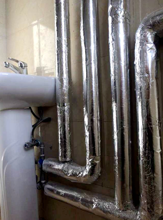公司承建的色達(dá)洛若撤鄉(xiāng)建鎮(zhèn)工程地處高海拔地區(qū),晝夜溫差大,絕對(duì)氣溫較低,最低可達(dá)到零下36.3度,室外最大凍土層深達(dá)1.8米。這樣極端惡劣的氣候條件,給管道安裝施工技術(shù)帶來(lái)了一系列難題。經(jīng)過充分調(diào)研、技術(shù)攻關(guān)之后,決定采用較先進(jìn)的自限式電伴熱技術(shù)。自限式電伴熱技術(shù),簡(jiǎn)而言之,就是為管道穿上智能“保暖衣”。該技術(shù)能夠自動(dòng)調(diào)控溫度,按需供熱,即時(shí)調(diào)整功率,在溫度過高段不加熱,溫度過低段多加熱,確保全線溫度均勻穩(wěn)定,有效解決了溫度過低、室內(nèi)外溫差過大對(duì)管道造成的威脅,從而達(dá)到為管道保溫、防凍的目的。同時(shí)該技術(shù)布置靈活,不受傳統(tǒng)熱源距離的限制,對(duì)管道沒有腐蝕性。
