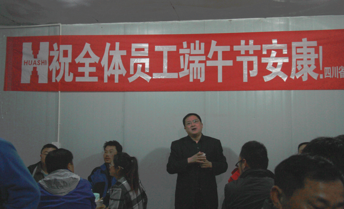“各位同志們都辛苦了!如今大家也已經(jīng)在這片高原上奮戰(zhàn)了兩個(gè)月!首先,我代表集團(tuán)公司陳貴林董事長(zhǎng)、劉平書記和楊斌總經(jīng)理向大家說(shuō)一聲‘謝謝大家,感謝大家的堅(jiān)持和付出!’借此端午節(jié)之際,我特意代表集團(tuán)公司及我自己來(lái)到這里看望大家,慰問大家。在這里我以茶代酒,敬大家一杯!”在開餐前,萬(wàn)總向大家講道,“同志們,幸苦了,讓我們自己為自己干一杯!大家再接再厲!集團(tuán)期待你們的高歌凱旋!大家有沒有信心!”“有!”伴隨著萬(wàn)總的祝詞,每一位參戰(zhàn)員工熱情高漲,斗志昂揚(yáng)!