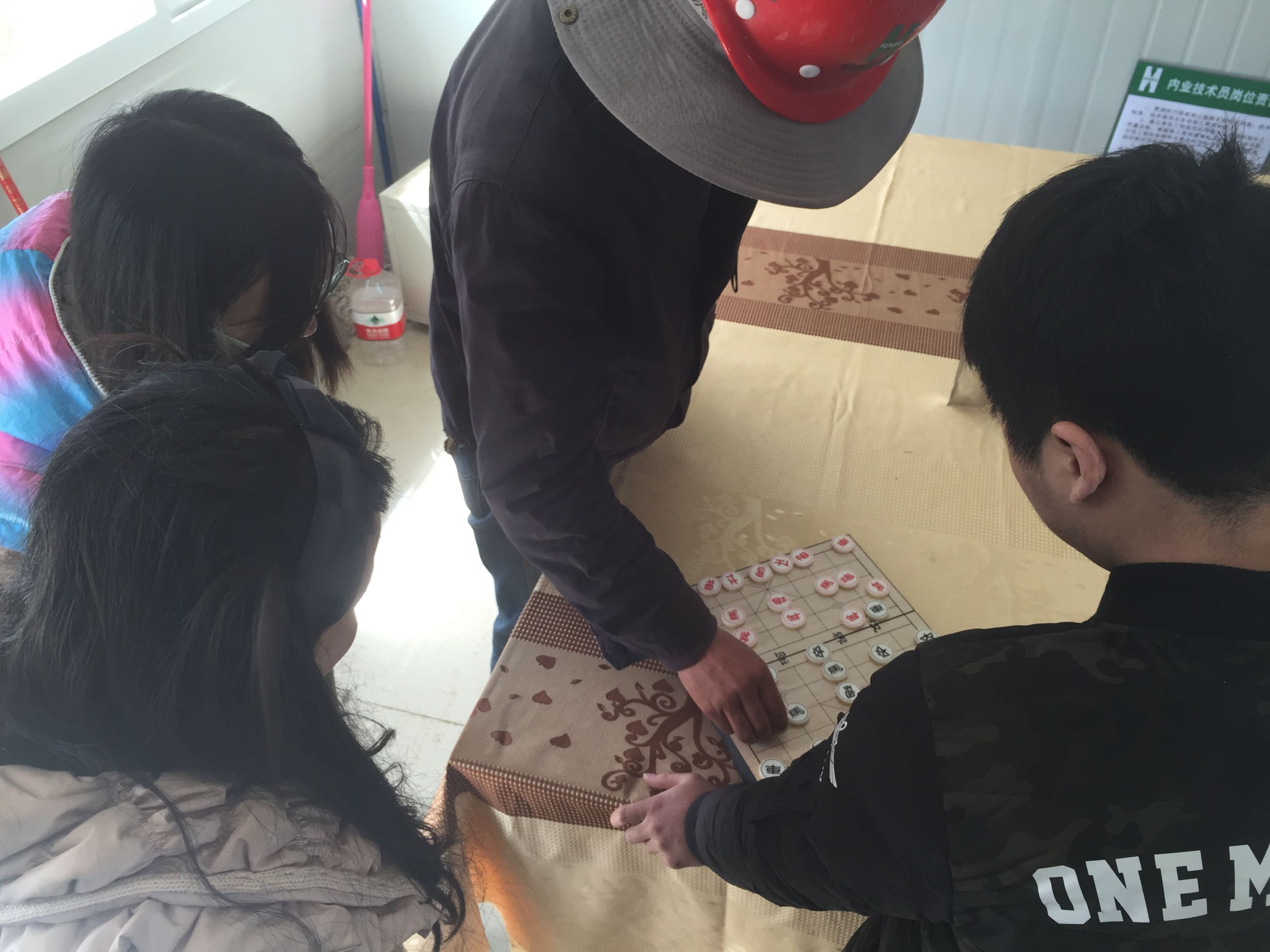 棋王爭霸可不止棋,比賽分為三項青年員工喜聞樂見的項目:象棋、五子棋及斗地主。象棋采用單局晉級制外,其余項目均采用三局兩勝制。青年員工全員參與,從4月28日開賽到5月4日落下帷幕,這場高原爭霸持續(xù)了一周的時間,這一周里,不論是隊員還是觀眾都非常投入,貼在墻上的那張手繪示意表格不斷更新,項目部洋溢著青春的活力,大家熱情高漲,工作時也更加精神煥發(fā)。