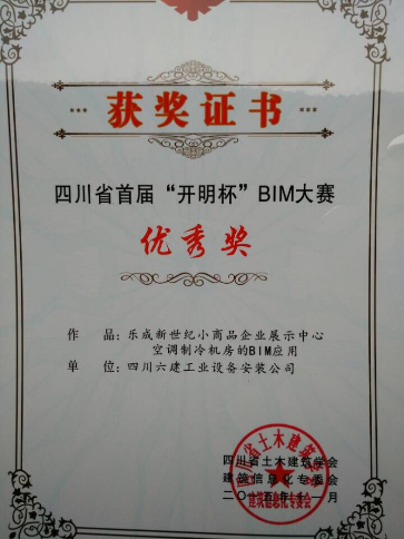 四川省首屆“開明杯”BIM大賽,由四川省土木建筑學會建筑信息化專委會主辦,旨在推動建筑業(yè)信息化和BIM技術(shù)的發(fā)展。安裝分公司BIM技術(shù)組攜《樂成新世紀小商品企業(yè)展示中心空調(diào)制冷機房的BIM應(yīng)用》作品參賽,經(jīng)過層層選拔,脫穎而出,榮獲了開明杯BIM大賽優(yōu)秀獎,證明了安裝分公司的實力,提高了公司的影響力。