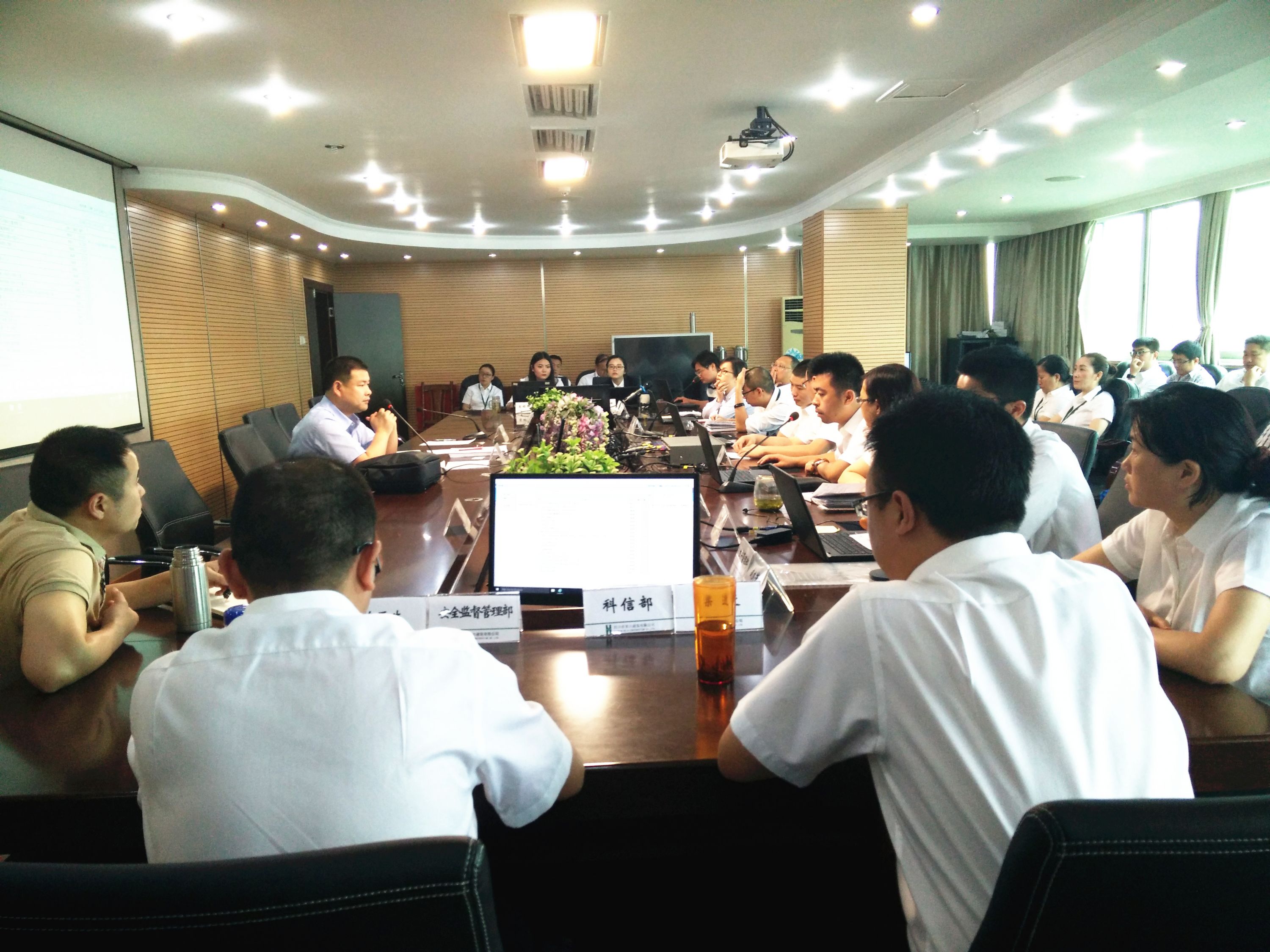 2016年5月4日,為提高信息化應(yīng)用水平,滿足公司申報特級資質(zhì)信息化考評的要求,公司邀請?zhí)丶壻Y質(zhì)信息化考評標(biāo)準(zhǔn)主編人及信息化建設(shè)方面的專家來我公司對信息化建設(shè)工作給予指導(dǎo),并進(jìn)行特級資質(zhì)信息化模擬考評。公司董事長和機(jī)關(guān)各部門、各分公司相關(guān)人員共計50余人全程參加了模擬考評。