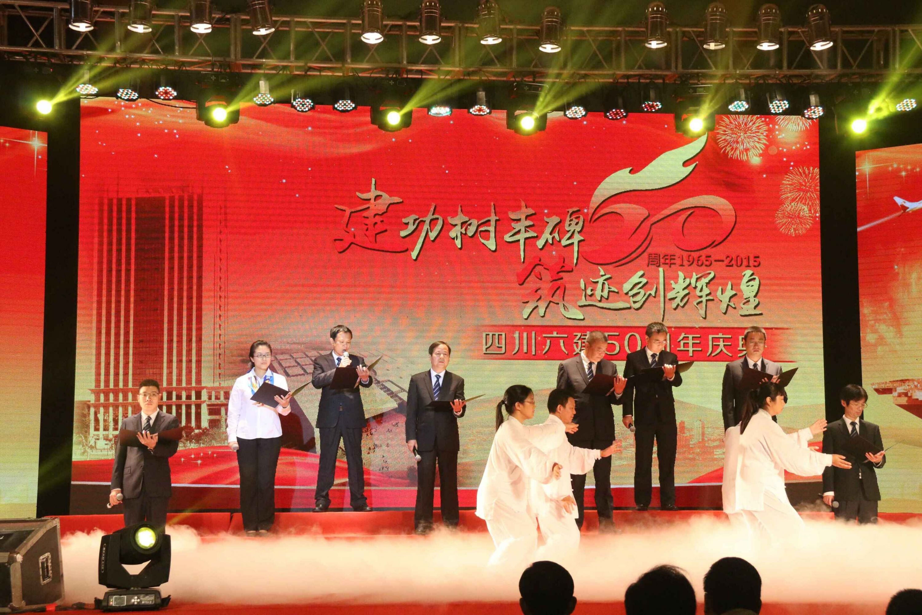 50年創(chuàng)業(yè)辛,一部發(fā)展史;50年凱歌奏,一曲奮進(jìn)歌。10月22日,集團(tuán)會(huì)議廳一片歡聲雷動(dòng),公司正在這里舉行“慶建司50周年文藝匯演暨慶典”。連綿的秋雨并絲毫沒有降低他們的熱情,場(chǎng)內(nèi)場(chǎng)外400余名六建員工用歌聲來抒發(fā)心中對(duì)華西、對(duì)六建的厚重情感。