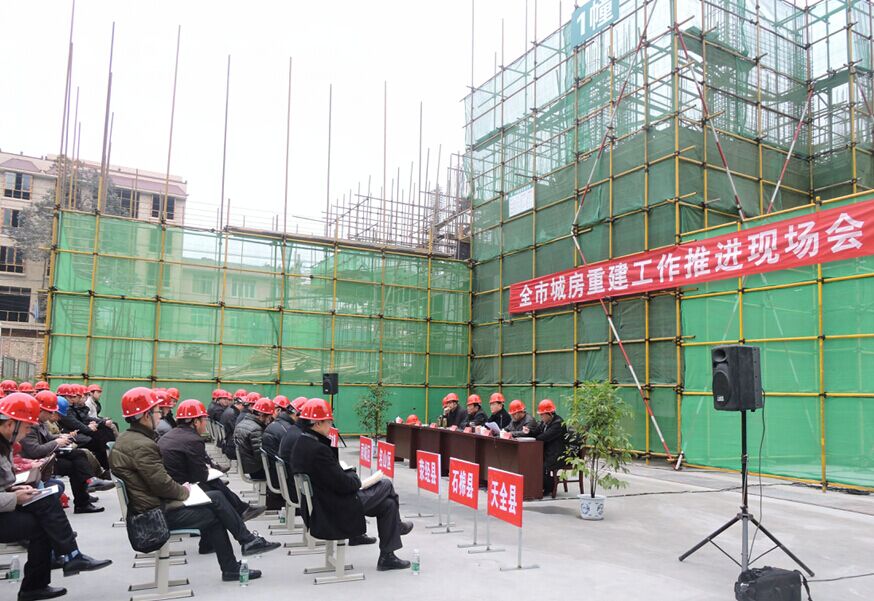 3月4日,省住房城鄉(xiāng)建設(shè)廳副廳長王衛(wèi)南、雅安市委常委徐一新、雅安市副市長卯輝以及來至雅安市各區(qū)縣的領(lǐng)導(dǎo)在新蘆山中學(xué)安居房項(xiàng)目召開全市城房重建工作推進(jìn)現(xiàn)場會(huì)。