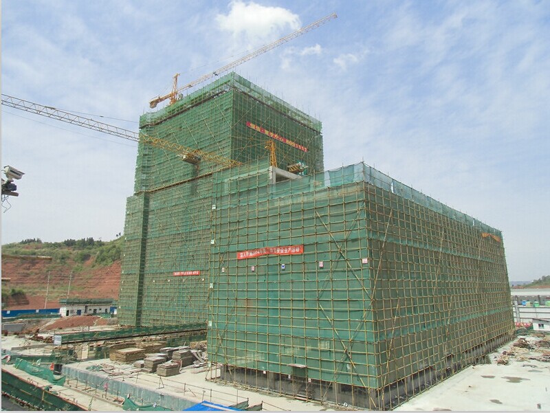 遂寧市恒信·寰宇中心1號樓工程是三分公司近年來首次承接的超高層建筑物,其主體高度為139.85m,建筑高度達到151.7m,屬遂寧市地標(biāo)性建筑物。該工程位于遂寧市中國西部現(xiàn)代物流港商流核心區(qū)內(nèi),場地東側(cè)毗鄰遂寧市商務(wù)客運車站,南側(cè)為318國道,場地地勢較為開闊、平坦。本工程由1幢35層塔樓建筑及4層裙房和兩層地下室組成,其中,主樓部分基礎(chǔ)為2.9m厚筏板基礎(chǔ),電梯井和集水坑最大厚度達7.7m。