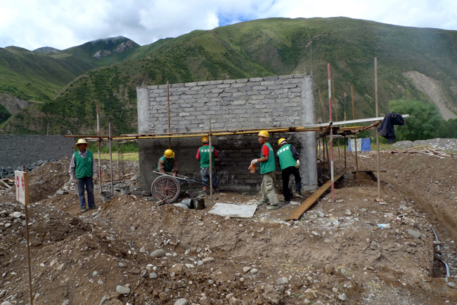 光榮而艱巨的重建任務賦予華西,全力以赴建設美好新石渠是華西人義不容辭的責任?!熬葹木褪蔷让?,重建就是為民?!笔暮笾亟ㄅR時黨支部應運而生,積極籌備重建工作。7月16日,華西集團石渠災后重建施工隊伍奔赴石渠,順利抵達真達鄉(xiāng);精心組織施工,18日正式挖土動工,讓黨旗在4200米高原高高飄揚;攜手攻克時艱,海拔高、路不通、通訊無、運輸長,黨員奮勇爭先雪域高原大干一場,為保證災民安全過冬,石渠災后重建黨支部用信心和責任譜寫出一曲曲災后重建的感人樂章。