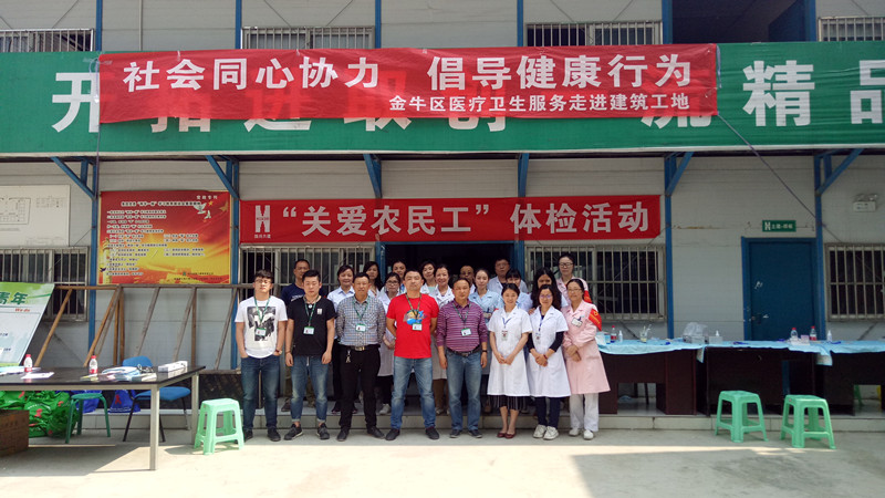 5月9日,六公司南城都匯六期匯彩園(20#地塊)”項目部邀請金牛區(qū)醫(yī)療衛(wèi)生服務站與建筑醫(yī)院為項目部300多名農(nóng)民工兄弟們進行免費健康體檢。這是首次醫(yī)療隊伍進項目,此次體檢共分為,健康咨詢,抽血化驗。