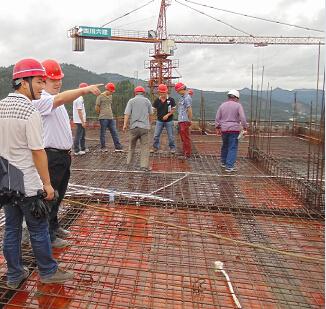 緊接著進(jìn)行的是主樓地梁和樓上部分的工程。為了達(dá)到設(shè)計(jì)圖紙上的標(biāo)高,現(xiàn)場(chǎng)澆筑的樁砼需要通過(guò)破樁小部分、調(diào)直鋼筋,才便于和地梁相連接,才能達(dá)到設(shè)計(jì)圖紙的要求,現(xiàn)場(chǎng)施工員蹲點(diǎn)指揮挖機(jī),操作破樁的噪音非常大,現(xiàn)場(chǎng)人員不得不扯著嗓子不厭其煩地大聲指揮。當(dāng)?shù)亓汉蜆洞罱硬⑶翼艥矒v完成后,地上部分開(kāi)始進(jìn)入正軌。每個(gè)樓層面施工前,放線測(cè)量布置各個(gè)構(gòu)件的水平點(diǎn)及標(biāo)高,控制樓體的結(jié)構(gòu)標(biāo)高和平面布局;接著是鋼筋工按圖紙綁扎鋼筋,現(xiàn)場(chǎng)管理人員對(duì)圖檢查并指導(dǎo),針對(duì)有爭(zhēng)論的地方,和班組共同協(xié)商探討解決;模板在綁扎之后定格成型,依靠室內(nèi)室外腳手架,參照?qǐng)D紙各個(gè)部位的尺寸大小,制作模板,然后支護(hù)腳手架完成模板安裝,便于砼澆筑可以有效的成型而不被爆模,保證施工質(zhì)量和主體外觀。這些工作完成之后,還要進(jìn)行潤(rùn)濕模板澆搗砼,為保證構(gòu)件砼密實(shí)和鋼筋有效咬合,必須在不破壞鋼筋制安的基礎(chǔ)上充分振搗,而且水平板面控制是一個(gè)關(guān)鍵點(diǎn),這個(gè)點(diǎn)控制板厚,而板厚又直接影響房間凈高,在工程完工的分戶驗(yàn)收也會(huì)受其影響;澆搗完成之后,養(yǎng)護(hù)一段時(shí)間,便可以拆模。